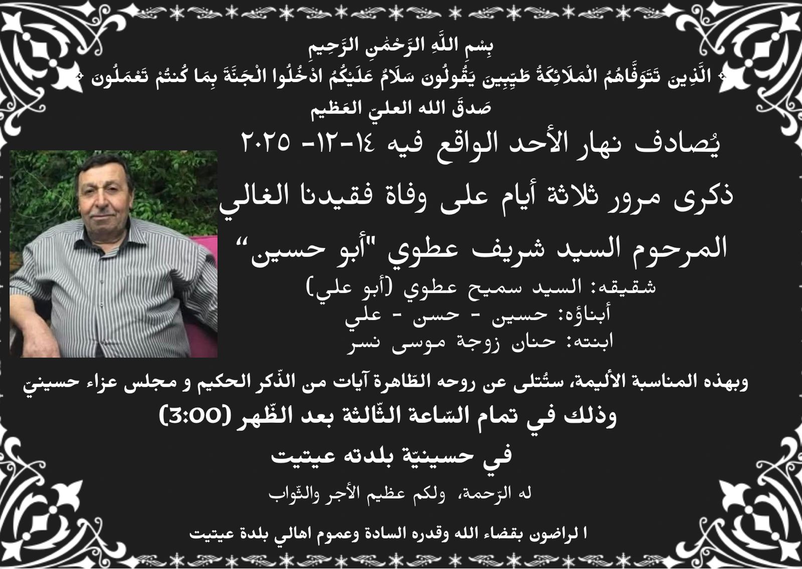 السلام عليكم ورحمة الله وبركاته، لمناسبة الذكرى السنوية لاستشهاد قادة المقاومة وتفجير حسينية معركة، ندعوكم للمشاركة في وضع إكليل من…