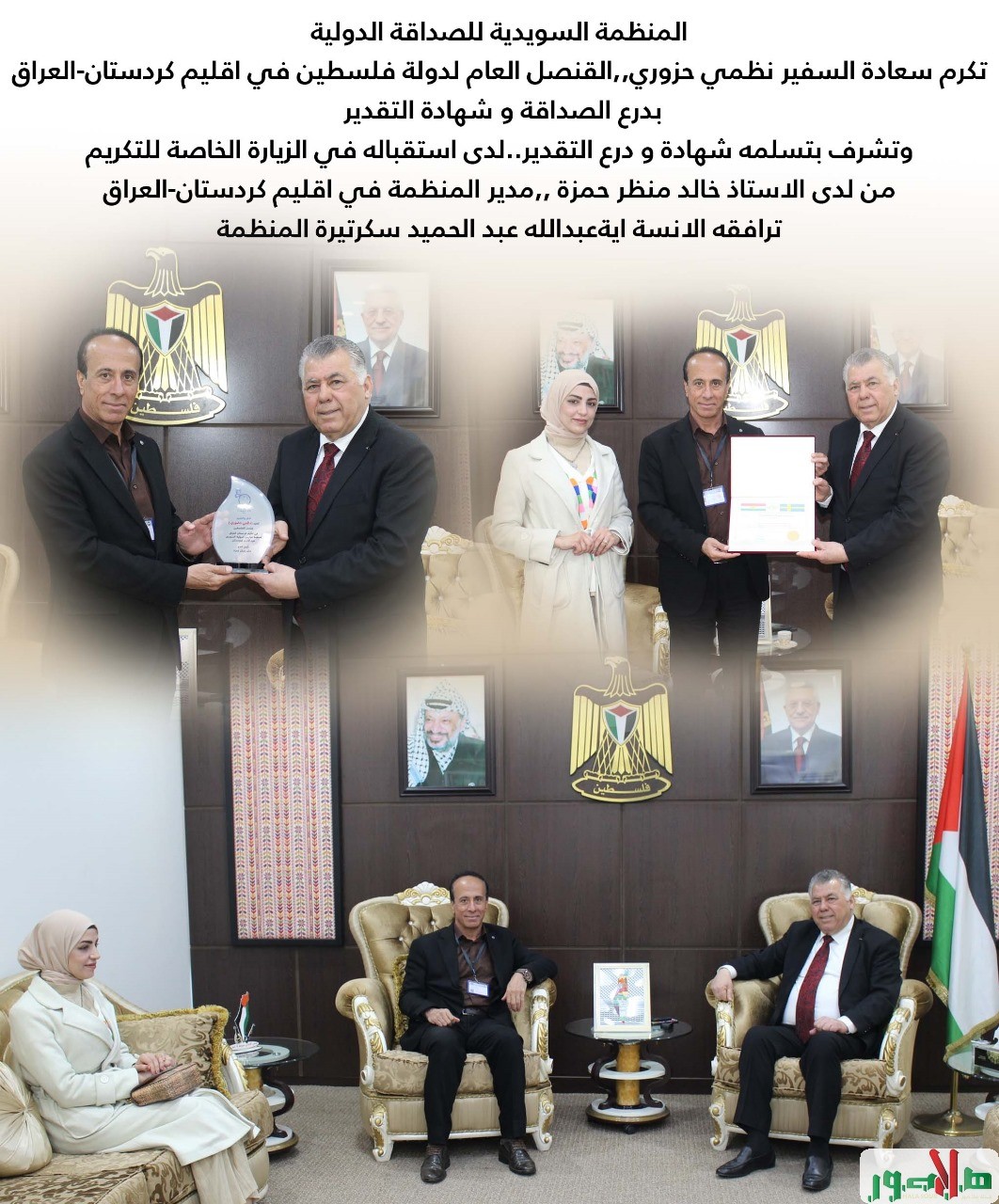 الرئيسية/المنظمة السويدية للصداقة الدولية تكرم سعادة السفير نظمي حزوري,,القنصل العام لدولة فلسطين في اقليم كردستان-العراق بدرع الصداقة و شهادة التقدير/صورة واتساب بتاريخ 1445-09-21 في 10.57.42_43a5d88f صورة واتساب بتاريخ 1445-09-21 في 10.57.42_43a5d88f