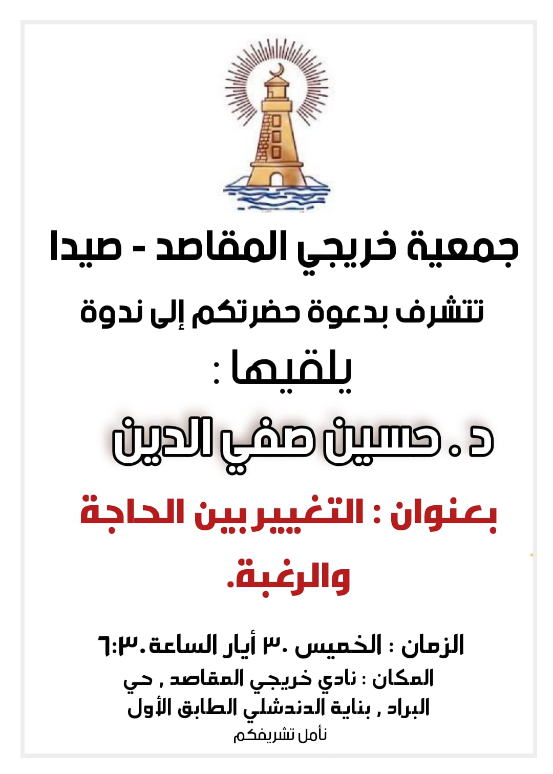 الرئيسية/دعوة لحضور اللقاء الحواري مع الباحث د. حسين صفي الدين في مركز خريجي المقاصد ــ صيدا ــ/صورة واتساب بتاريخ 1445-11-15 في 14.59.50_9c610a90 صورة واتساب بتاريخ 1445-11-15 في 14.59.50_9c610a90