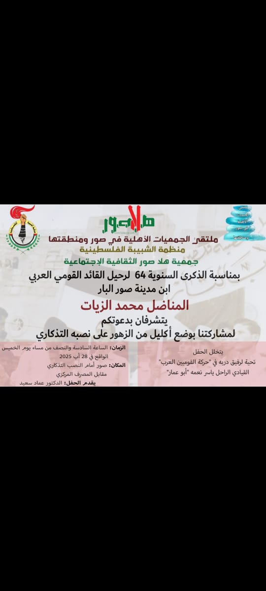 الرئيسية/دعوة للمشاركة في احياء الذكرى السنوية 64 لوفاة المناضل القومي العربي محمد الزيات وتحية لرفيق دربه الراحل ياسر نعمه ( ابو عمار )/2eae617a-0718-43a7-b35a-d60a45af77c1 2eae617a-0718-43a7-b35a-d60a45af77c1