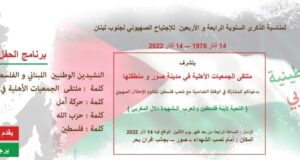 الرئيسية/دعوة للمشاركة في ذكرى 14 أذار 1978 ــــ 14 أذار 2022 في مدينة صور تحية للشهيدة دلال المغربي/275136229_4635767296534070_7987090609553164947_n-780×417 275136229_4635767296534070_7987090609553164947_n-780×417