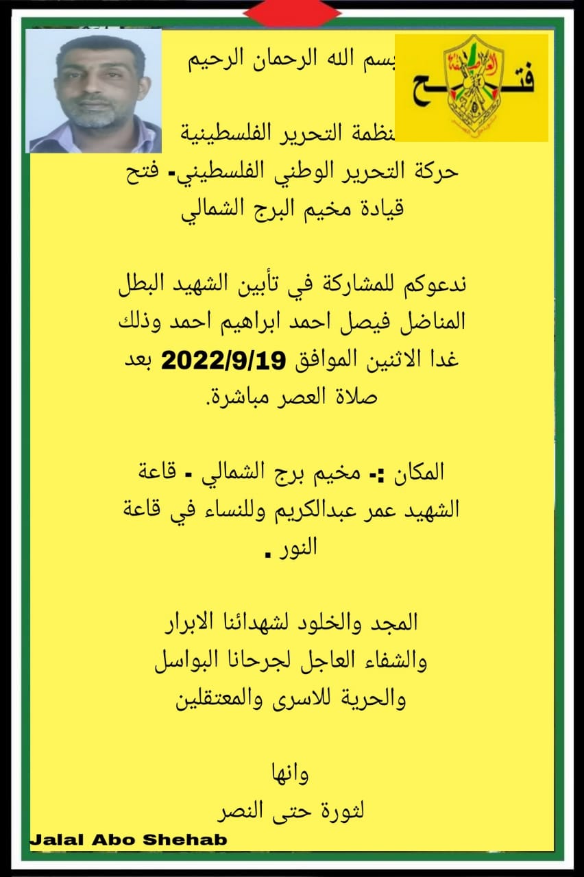 الرئيسية/دعوة للمشاركه في حفل تأبين الشهيد فيصل أحمد إبراهيم أحمد/WhatsApp Image 2022-09-18 at 7.00.30 PM WhatsApp Image 2022-09-18 at 7.00.30 PM