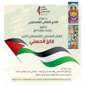 الرئيسية/النادي الثقافي الفلسطيني يستضيف في جلسةٍ حواريّة، الفنان التشكيلي الفلسطيني الكبير القادم من غزّة *فايز الحسني - أبو رِمَاح./WhatsApp Image 2022-09-20 at 8.03.55 PM WhatsApp Image 2022-09-20 at 8.03.55 PM Share on: WhatsApp