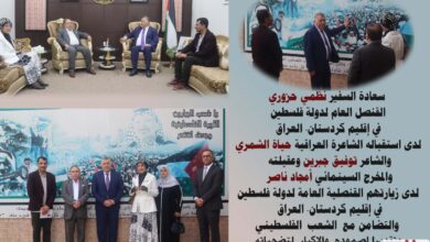 سعادة القنصل العام للمملكة الاردنية الهاشمية السيد فؤاد المجالي بزيارته للقنصلية العامة لدولة فلسطين في اقليم كردستان- العراق ظهر يوم…