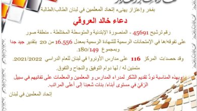 يَفْخَر إتّحاد الْمُعَلِّمِين فِي لُبْنَان بمدرائنا ومعلّمينا أَصْحَاب الْفَضْل الْأَسَاس فِي تفوّق تلامذتنا بِالرَّغْمِ مِنْ كُلِّ الصِّعَاب والتحديات ، كُنْتُمْ…