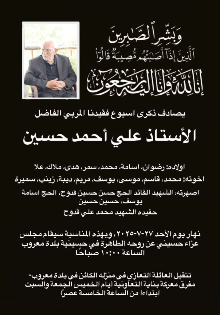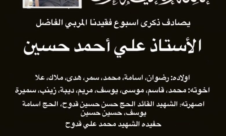 ذكرى اسبوع المربي الفاضل الاستاذ علي احمد حسين