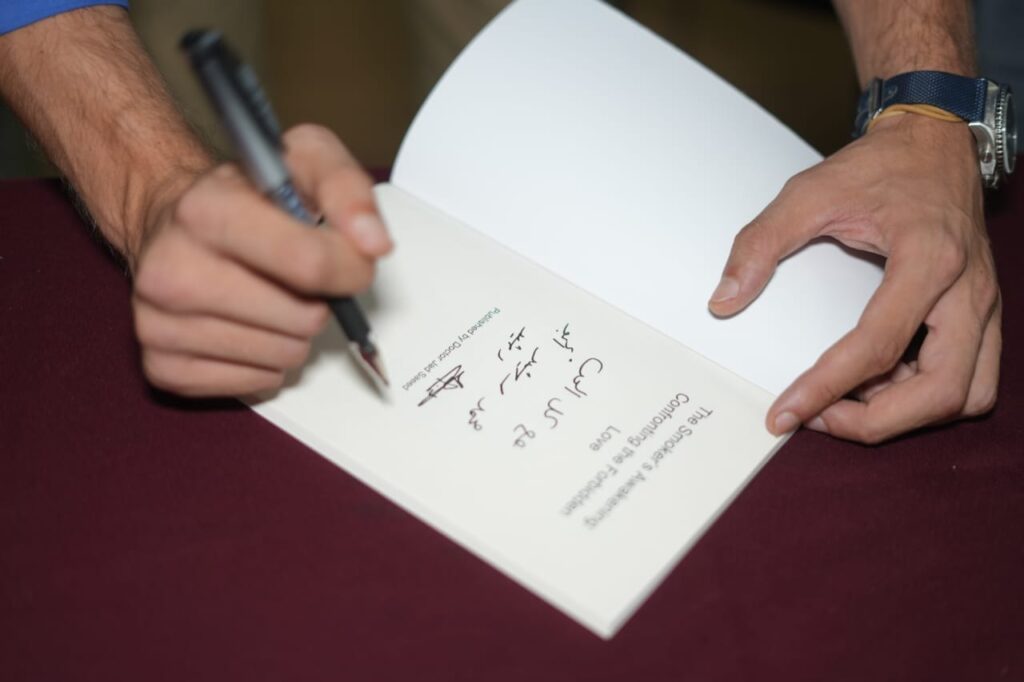 ٠ثم قام بتوقيع الكتاب للحضور والتقاط الصور التذكارية في هدا الحفل الذي تحول إلى عرس ثقافي كبير وانتهى بكوكتيل وضيافة على شرف الحاضرين