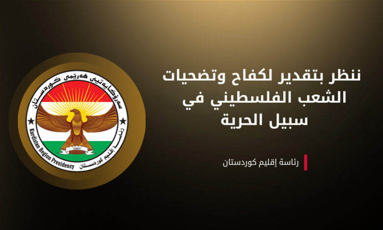 أعلنت رئاسة إقليم كوردستان دعمها لحق الفلسطينيين في تقرير مصيرهم، وإقامة دولتهم المستقلة في إطار الشرعية والقوانين الدولية.