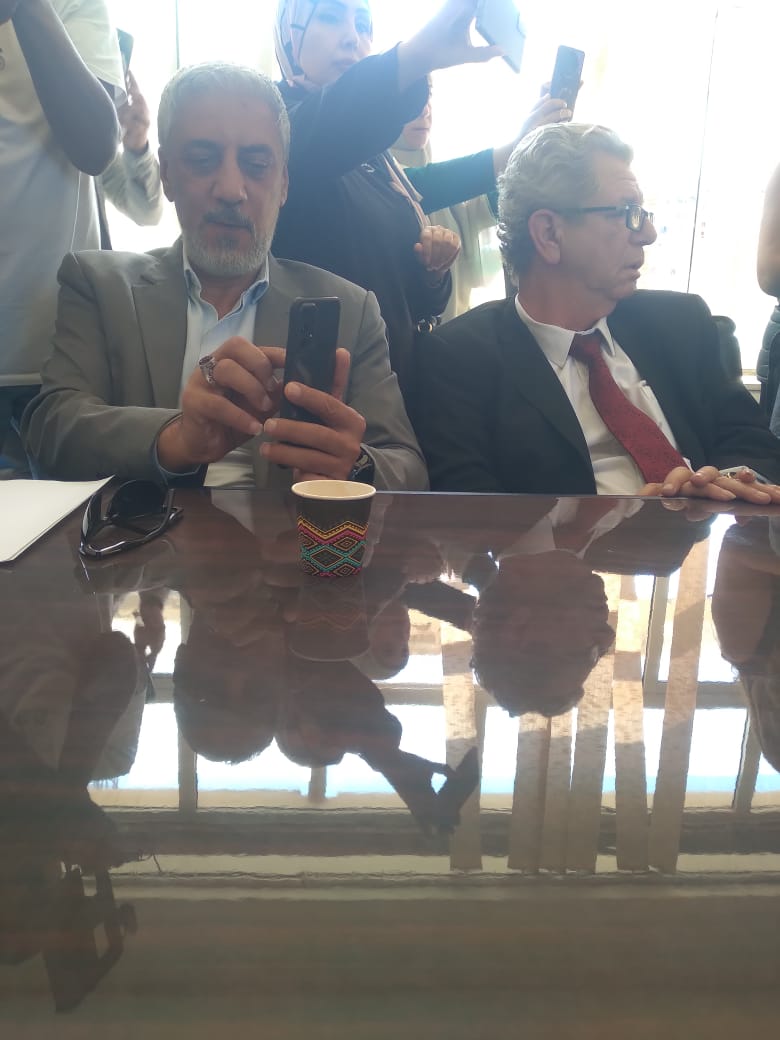 الدكتور عماد سعيد يلتقي الاستاذ عبد الهادي محفوظ،ويسلمه دعوة لالقا؛، ندوة في معرض الكتاب العربي لهلا صور