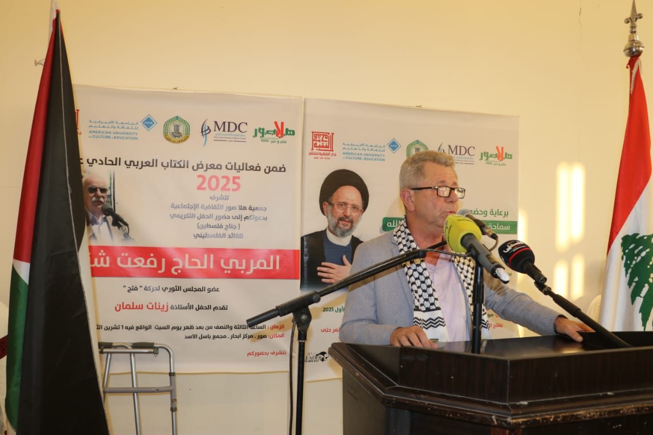 شهد مركز “إبحار الثقافي” في مدينة صور جنوب لبنان احتفالا حاشدا تكريما لعضو المجلس الثوري لحركة “فتح” الحاج رفعت شناعة بدعوة من جمعية هلا صور الثقافية الاجتماعية وذلك ضمن فعاليات معرض الكتاب العربي الحادي عشر الذي تنظمه الجمعية.