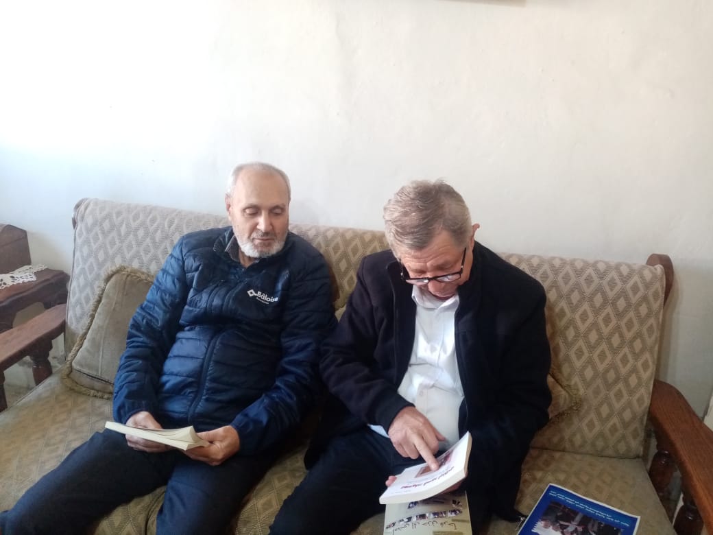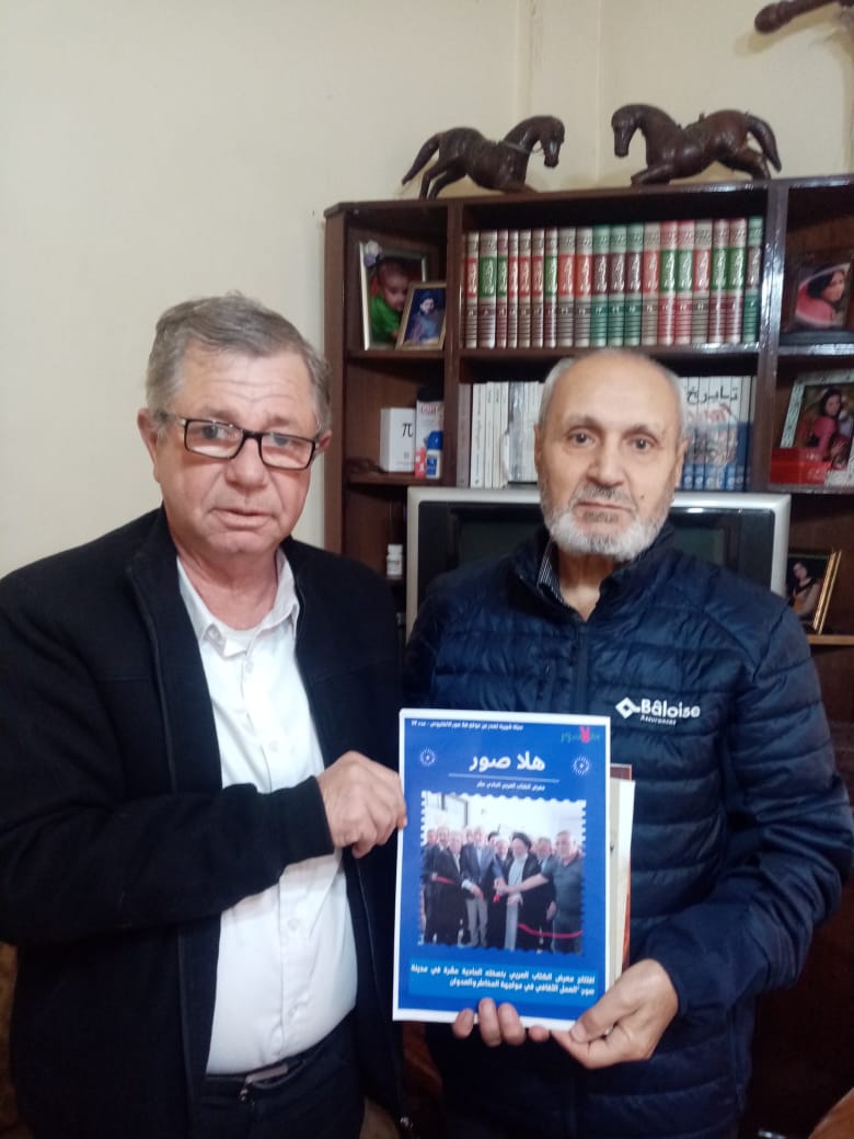 رئيس جمعية هلا صور الثقافية الاجتماعية الكاتب الدكتور عماد سعيد يزور المربي الاستاذ محمد رعد في البازورية ويقدم اليه ٣إصدارات