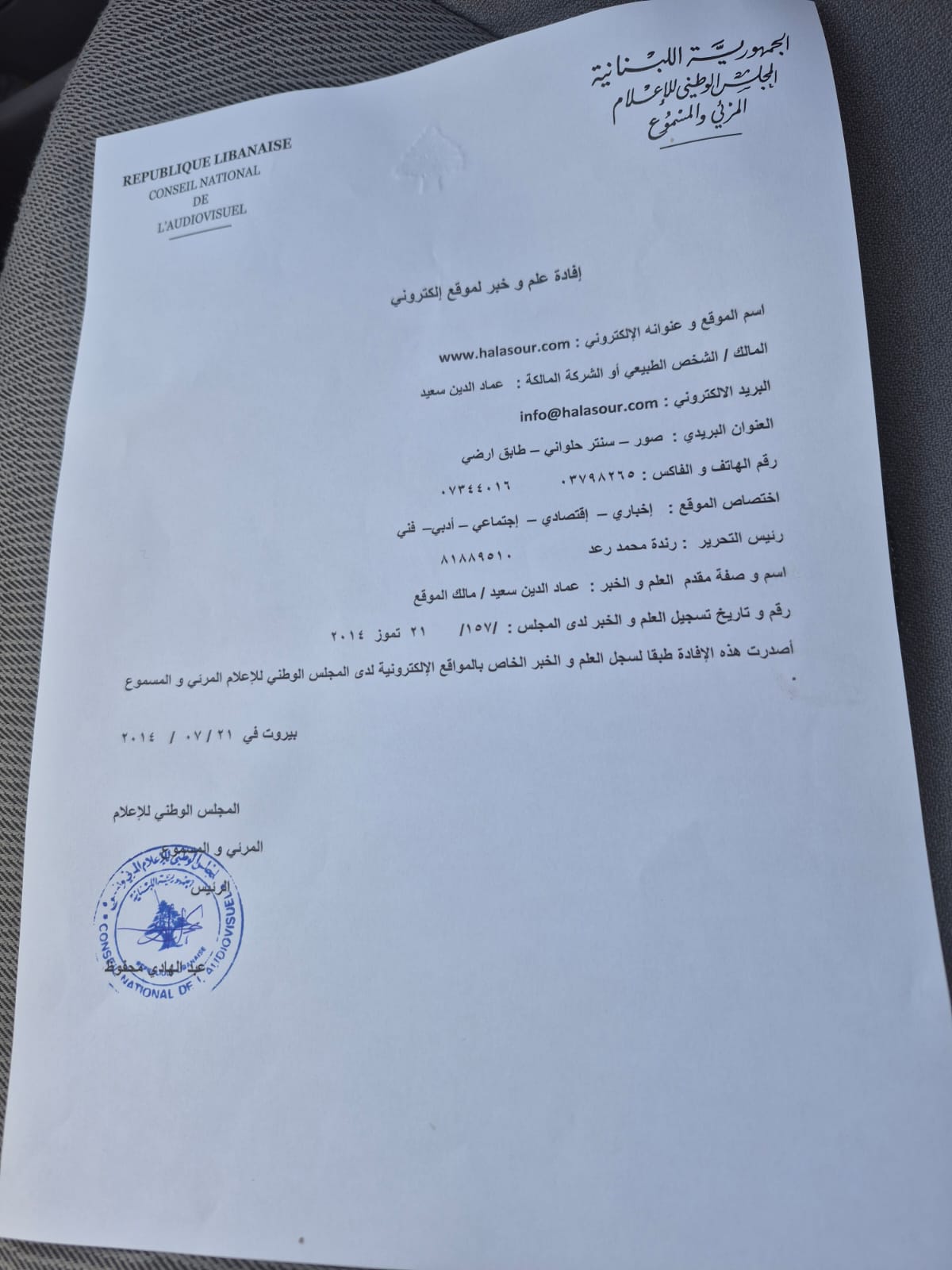 تم تعيين الإعلامية رندة محمد رعد بصفتها رئيس تحرير مجلة هلا صور الورقية الشهرية الثقافية الورقية وذلك لكونها تملك من الطاقات الإعلامية والثقافية ما يميزها ويجعلها تتصدر هذا المنصب اضافة الى تخصصها الجامعي في هذا المجال الحيوي٠