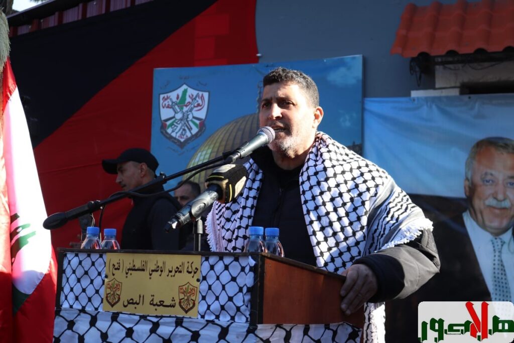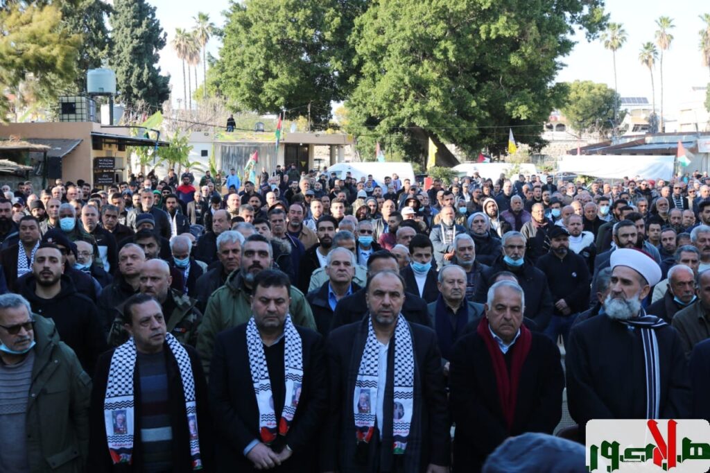 وممثلي المؤسسات والاتحادات والاندية والمكاتب الحركية، واللجان الشعبية والاتحاد العام للمرأة الفلسطينية، وحشد غفير من جماهير أبناء شعبنا في المخيمات والتجمعات الفلسطينية في منطقة صور جنوبي لبنان اليوم الثلاثاء ٢٢-٣-٢٠٢٢ في ساحة مستشفى الشهيد ياسر عرفات بمخيم البص.
